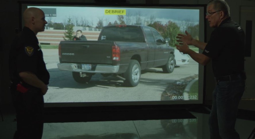 Driving simulated Traffic Stop training with integrated with the Milo Range 4